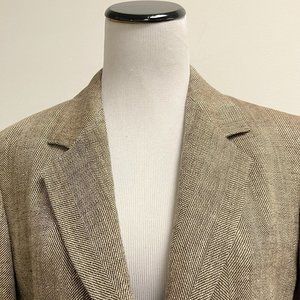 Max Mara herringbone blazer brown tan Italy linen 8