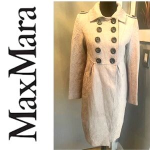 Tags: Max Mara, coat, jacket, empire waist, double breasted jacquard, floral, beige, Italy, Italian, winter, fall, spring, autumn