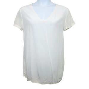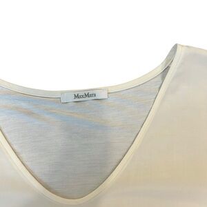 Max Mara silk ivory white v neck short sleeve top size 48/large old money