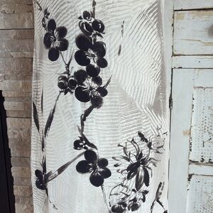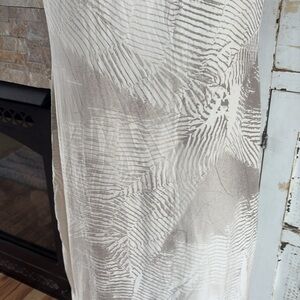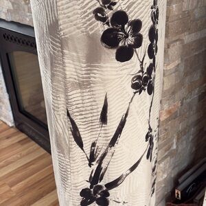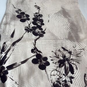 Max Mara cream lined sheath dress with black and brown flowers and a snakeskin pattern. Slit on one side
