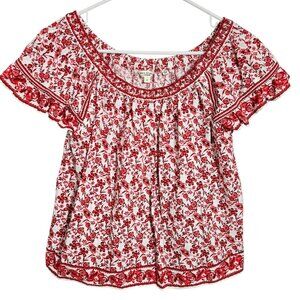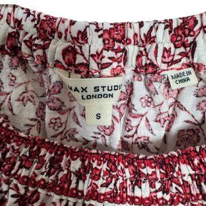Max Max Studio London Red Floral Boho Peasant Top Size Small on off shoulder