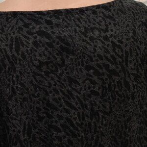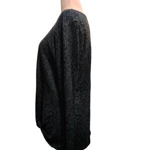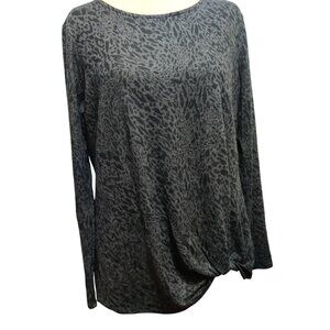 Max & Mia L Black Gray Leopard Print Long Sleeve Boat Neck Twist Hem Knit Top