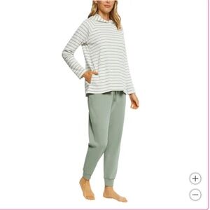 Gorgeous sage green pants and striped top. Waffle textured cotton rich knit fabric.