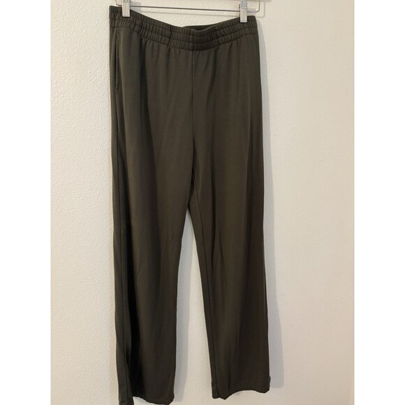Max & Mia Women's Cozy Knit Lounge Set 2-Piece Olive Green Hooded EUC Wide Leg