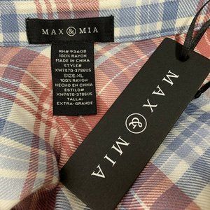 Max & Mia XL Plaid Rose Long Sleeve Button Front