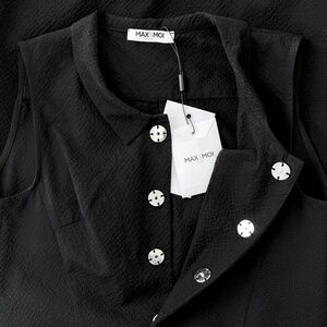 Max & Moi Sleeveless Collared Half Placket Shift Dress Black Sz 2 US/36 FR *NWT*