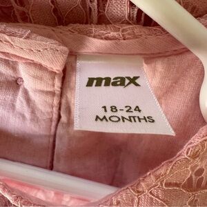 Max Pink Lace Dress Sleeveless Satin Bow Baby Girls 18-24M