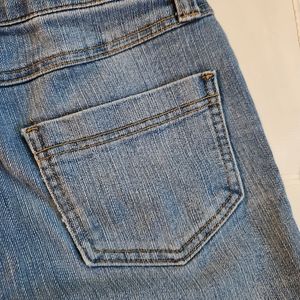 Features-Soft, Blue Jean shorts, pockets, stitching,button,zipper.