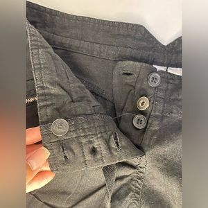 Zippered pocket and buttoned pockets on the back.