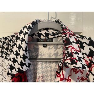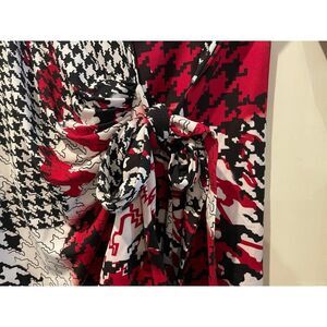 Max & Rina Houndstooth Suplice Wrap Long Sleeve Blouse Black White Red Small