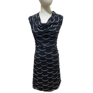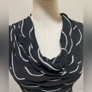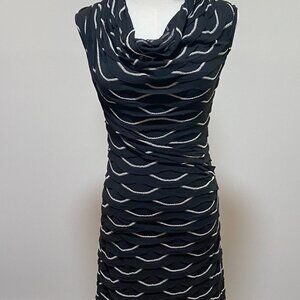 Max STUDIO BODCON BLACK MINI DRESS W OVERLAPPING PETALS W WHITE STITCHING NWOT