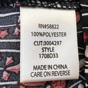 New With Tags MAX STUDIO Printed Crepe Black with Red and Cream Confetti Design Long Sleeve Top - Size Medium