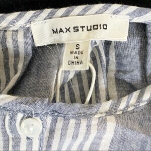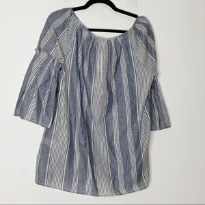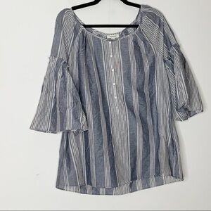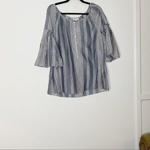 Max Studio grey striped blouse with bell sleeves. Wide neckline. Front button up. Side splits. NWT