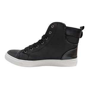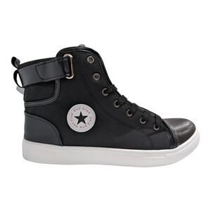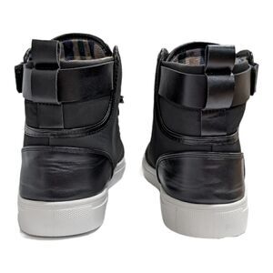 Max Star Men's Black Lace Up High Tops Faux Leather Straps Plaid Size 46, NWOT