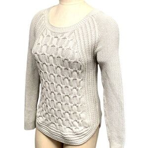 Max Studio 100% Cotton Mixed Knit Pattern S M Pullover Sweater Light Beige #235K