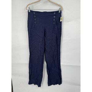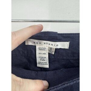 Max Studio 100% Linen Pant NEW Women 0 Navy Blue Straight Leg Minimalist Mature