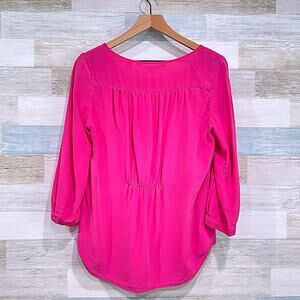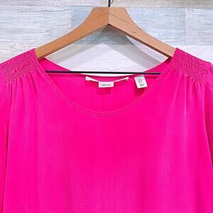 Max Studio 100% Silk Smocked Shoulder Blouse Pink 3/4 Sleeve Career Womens Small