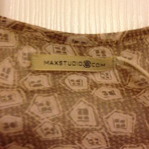 This stylish top from Max Studio is perfect for any occasion. Excellent condition. 100% silk. It has a silk camisole (shown in pic).