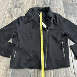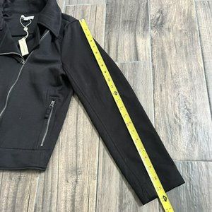 Max Studio $118 Ladies large Black Knit Scuba Moto Jacket Casual Minimalist