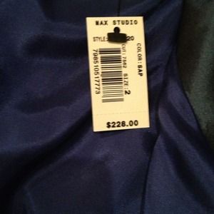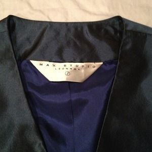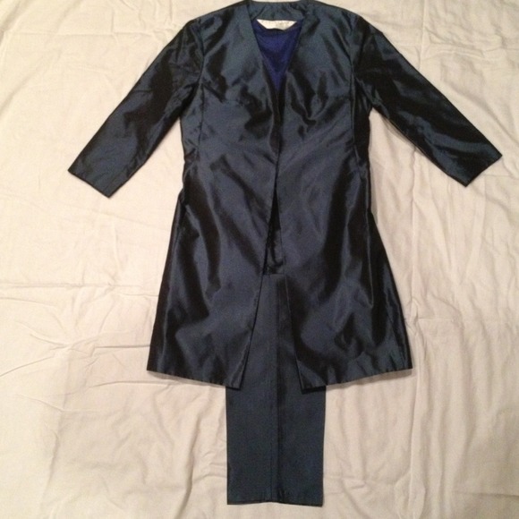 Max Studio 100% silk suit - color sapphire. It has a small hook to button up jacket. Very chic.