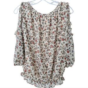 Max Studio -602 Georgette Elbow Sleeve Cold Shoulder Blouse Cream Floral XS