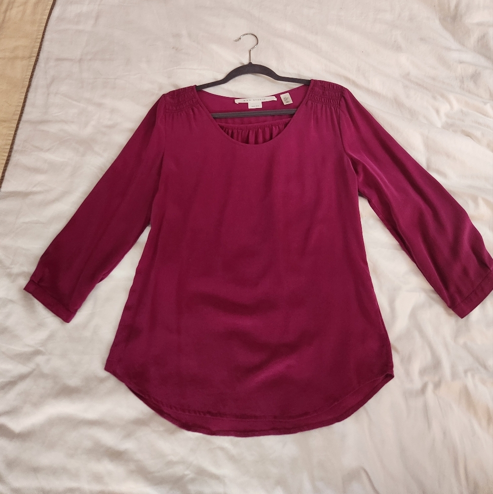 Pretty-in-pink, EUC Max Studio silk blouse. Wear it to the office or pair it with jeans for a night out.