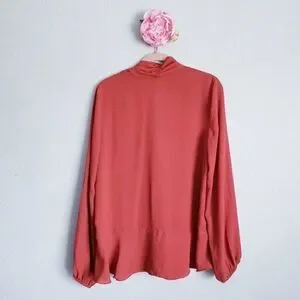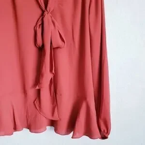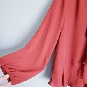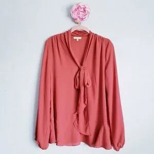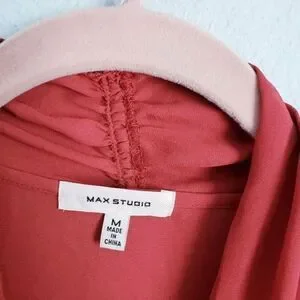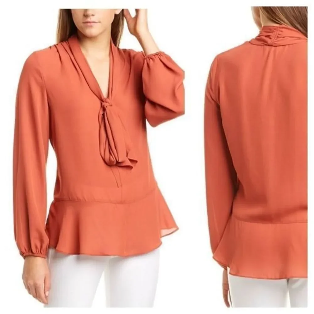 Max Studio Rust Flounce Hem Tie Neck Top