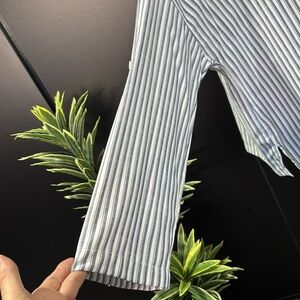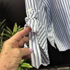 Max Studio Adjustable long sleeve, V-neck,chest pocket,side slit,vertical stripe