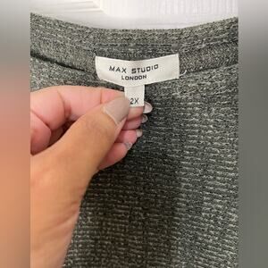 Max Studio Army Green Ribbed 3/4 sleeve Boxy Tunic Lagenlook Top size 2X