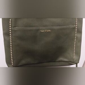 Max Studio Army Green Tote Satchel Gold Hardware and Studs Lots of Deep Pockets