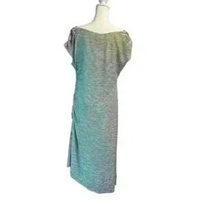 Max Studio Asymmetrical Maxi dress with black and white stripes. Cap sleeves, and has a adjustable tie to determine the height of the side slit. New with tags. Please see measurements in photos to ensure fit.