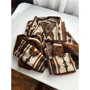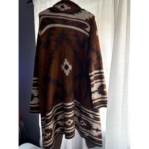 Max Studio Aztec Duster Cardigan Open Front Brown Tan Boho Medium