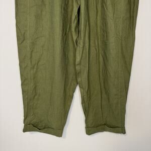 Max Studio Barrel Leg Trousers Women's Large Blended Linen Green Elastic Waist