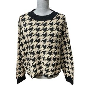 Max Studio Black Beige Houndstooth Knit Sweater Size Large