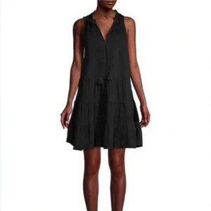 Max Studio Black Boho Tassel Tie Tiered Sleeveless Dress