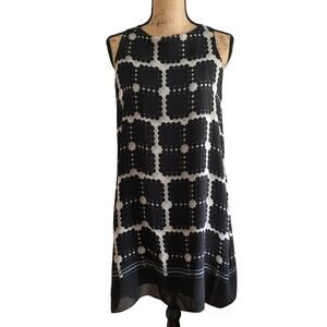 Max Studio Black & Cream Abstract Print A-Line Summer Dress Size Small Midi Glam