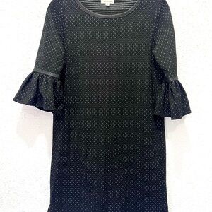 Max Studio Black Dress with Polka Dots and Flared Sleeves XS