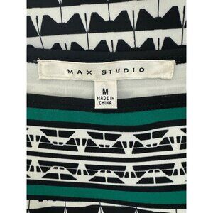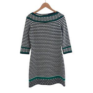 Max Studio Black Green White Boatneck Geometric Print Dress Sheath Size M Office