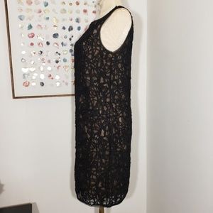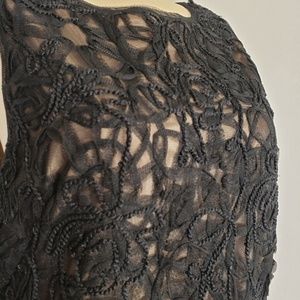 Black sequins tastefully embellish this elegant sleeveless black lace dress with exquisite details by Max Studio. Size M.