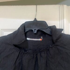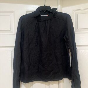 Max Studio Black Linen Long‎ Sleeve Gathered chest Open arm Blouse top Small