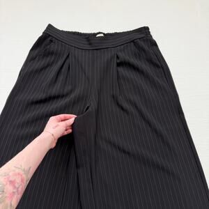 Max Studio Black Pinstripe Cropped Wide Leg Pants, Size Medium