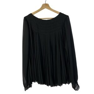 Max Studio Black Pleated Tie Neck Chiffon Long Sleeve Top M