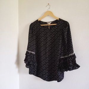 Max Studio // Black Polka Dot Bell Sleeve Top
