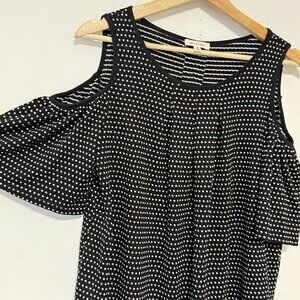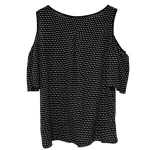 Max Studio Black Polkadot Short Sleeve Top Stretch Bare Shoulder Pleated Flowy M