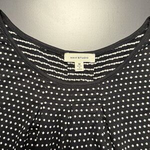 Max Studio Women’s Black with Mini White Polkadot Short Sleeve Top