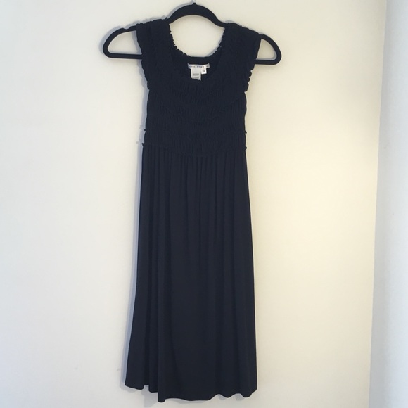 Max Studio midi dress with ruffle detail on the bodice. Bodice material is stretchy. Scoop neck, cap sleeves, XS with a flattering fit. If you're 5'3" or under this hits below the knee for more of a midi look. Like new condition, only wore once or twice!