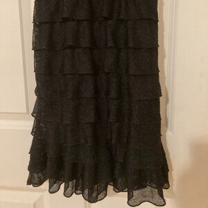 Max Studio Black Ruffled Ruched Midi Dress – Size M – Short Sleeves & V-Neck