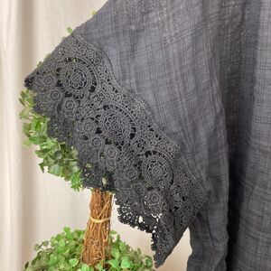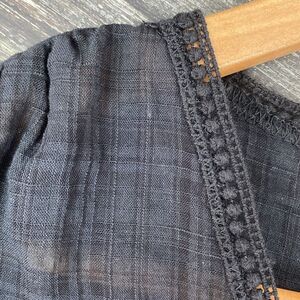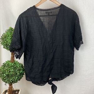 Max Studio Black Short Sleeve Peasant Boho Bohemian Top Blouse NEW L