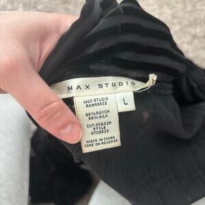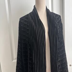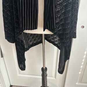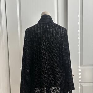 Max Studio Black Silk Blend Velvet Burnout Open Front Draped Cardigan Sz L