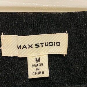 These are a pair of black & white career style pants by Max Studio with side pockets. They are flat front slip on style. Women's size medium. In good preowned condition.